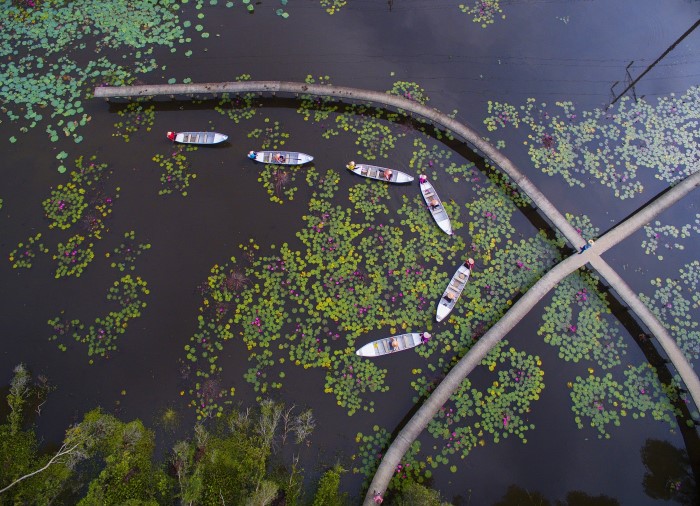 Đi xuồng len lỏi theo những dòng kênh xanh mát để ngắm vô số loài chim quý hiếm, hòa mình vào cảnh sắc thiên nhiên hoang dã cùng hương sắc các loài hoa (hoa sen, hoa súng, hoa hoàng đầu ấn, hoa nhĩ cán,…) thực sự đẹp tựa tiên cảnh