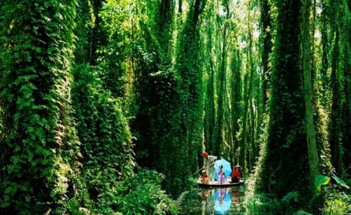 Mùa nước nổi rơi vào khoảng từ tháng 9 đến tháng 11 là mùa đẹp nhất tại khu rừng nguyên sinh này.Trải nghiệm ngồi xuồng đi xuyên rừng bạn sẽ khám phá được nhiều điều thú vị: dưới nước là một lớp bèo xanh phủ kín bề mặt; phía trên bao trùm một màu xanh tươi đầy sức sống của rừng cây; được tận mắt chiêm ngưỡng và ngắm nhìn rất nhiều loài chim,…