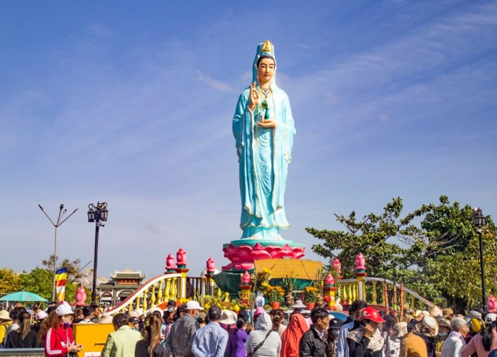 Đến đây bạn sẽ choáng ngợp trước bức tượng Mẹ Nam Hải cao 11 mét, đứng sững sững uy nghi trên đài sen trắng khổng lồ hướng ra biển Đông lộng gió giữa không gian thoáng đãng rộng hàng chục hecta.