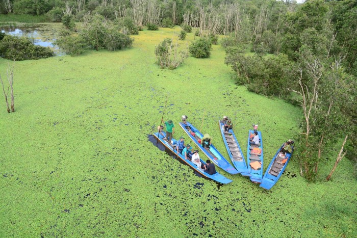 Trải nghiệm đi thuyền giữa thảm bèo xanh ngút ngàn, len lỏi trong các ngóc ngách của rừng tràm, nghe tiếng chim chóc đùa giỡn trên tán tràm sẽ rất khó quên.
