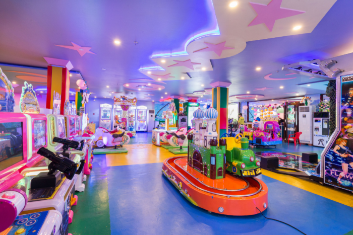 Bên cạnh đó, Kids Center còn các các máy game du khách có thể mua len ken (xu) tại quầy và cùng bé trải nghiệm các trò chơi thú vị như: gắp thú, ô tô nhún, mô tô trẻ em, bóng rổ, cỗ xe ngựa, đu quay,....và nhiều trò chơi khác, giúp các bé và ba mẹ cùng nhau tận hưởng kỳ nghỉ trọn vẹn.