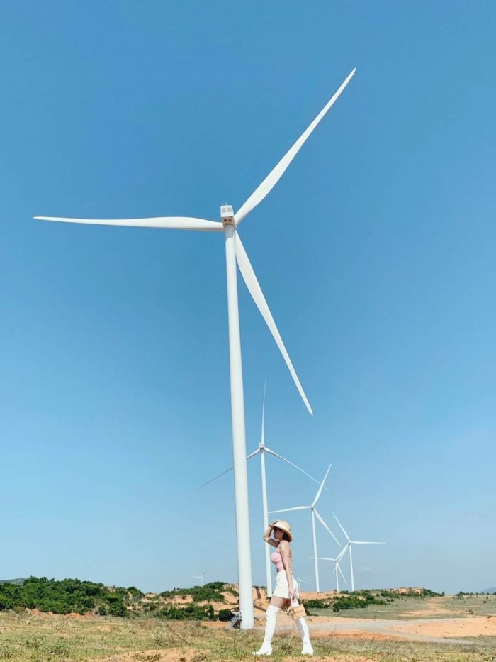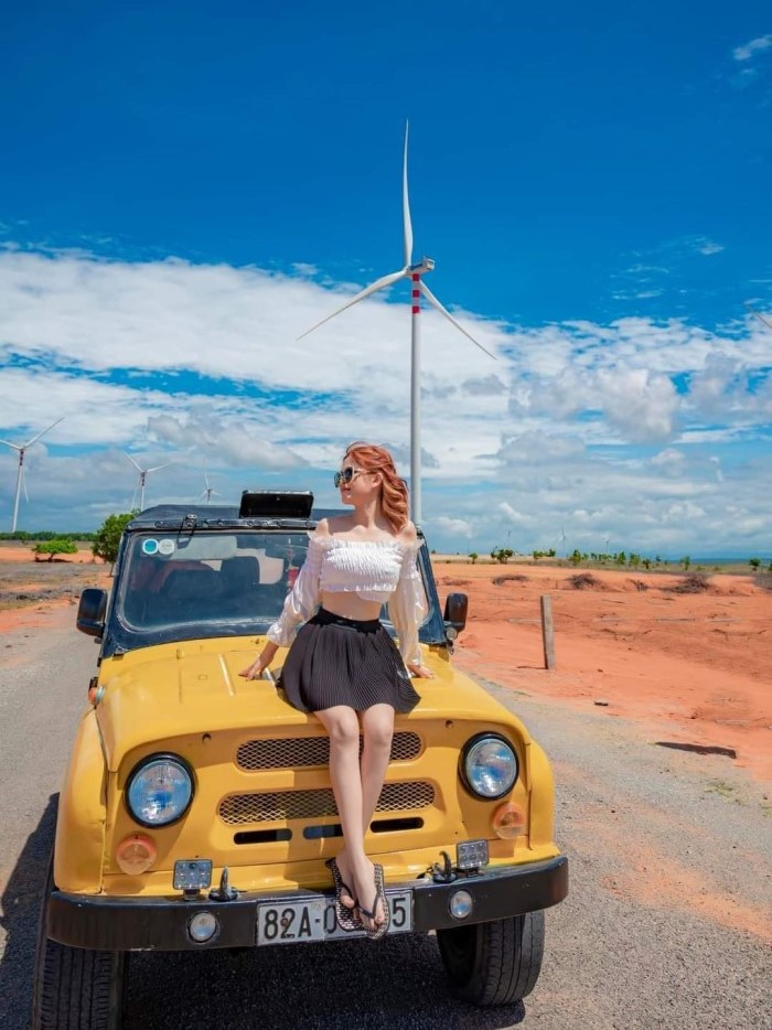 Wind turbines at Mui Ne located near the white lake where you can take beautiful pictures with the Jeep car. This place becomes a popular destination of many young couples check-in here .