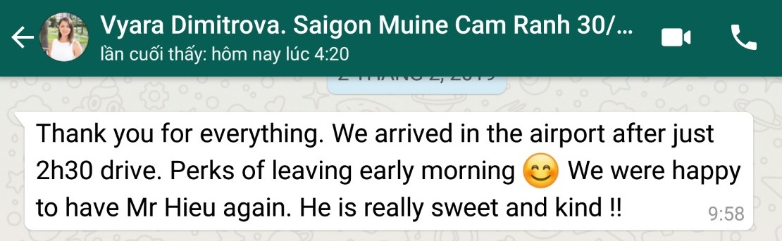 Hai Tuan Travel is a popular tour and transportation service company in Ho Chi Minh and Mui Ne, Vietnam. Known for its reliable and affordable private car and Jeep tours with comfortable vehicles and courteous drivers. Please read reviews from our value Customers who were using Hai Tuan Travel' services for airport transfers, private trips between the cities and other tourist destinations.