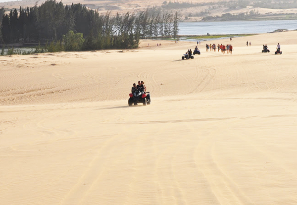Tourists take the jeep tour from your hotel/ resort in Mui Ne or you drive motorbike yourself to the White Sand Dunes. At the dunes, you can comfortably step barefoot on the sand and enjoy beauty of the White Lake when sunrise or sunset. For interesting, you can rent a jeep ride over the sand dunes top and take pictures of your own.