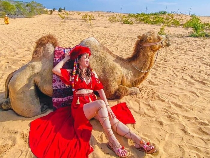 At Mui Ne white sand dunes, you can save beautiful photos next to cute camels! Taking pictures with camels in the white sand dunes will be the girls’ favorite experience. These camels are available at the area of the white sand dunes. So if you ride a Land car to climb the dunes or drive ATV (quad bike), you can see the camels at the hill side. Every time you climb up to take pictures with camels, it’s 200,000vnd, unlimited styles.