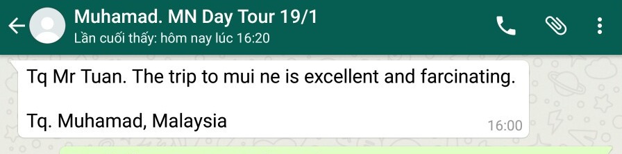– Returning time (from Mui Ne) around 9:30 or 10:00am by private car, air condition driving on the new highway Phan Thiet - Dau Giay
