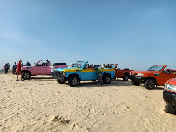 It is very simple and easily to book a Mui Ne Sand Dunes jeep tour online in advance via muine-explorer.com ; the reliable and trustable local company website. The most popular and best seller jeep tours at Mui Ne are Mui Ne Sand Dunes Sunrise and Mui Ne Sand Dunes Sunset Jeep Tour. The tour includes pick-up and drop-off from your accommodation, and a sunrise or sunset Jeep adventure to the white sand dunes of Mui Ne.