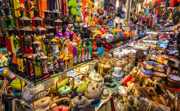Ben Thanh Market, an iconic feature of Ho Chi Minh City, opens in the early morning hours. When the doors to the main market close at 6:00 p.m. after a long day of trading, the night markets on the side streets open. It is a great place to buy local handicrafts, branded goods, Vietnamese art, and other souvenirs.