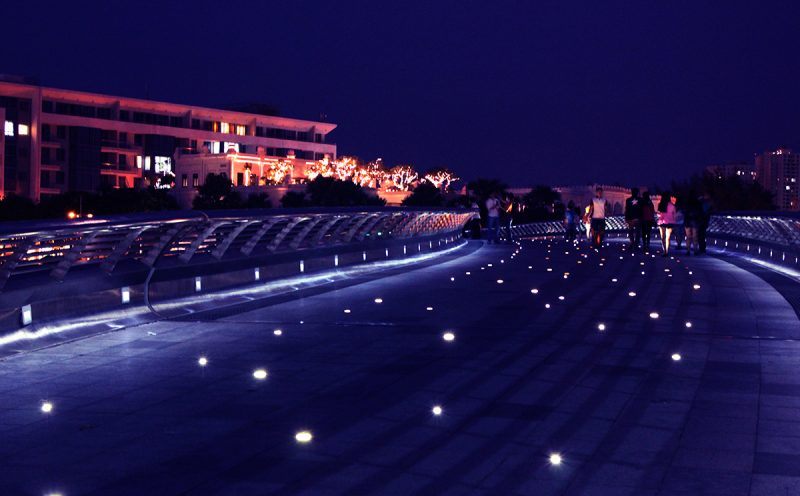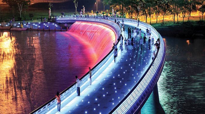 With a system of LEDs lights on the bridge surface, illuminated waterfalls, the Starlight Bridge is like an outstanding light line connecting the Canal District and the Crescent in the night