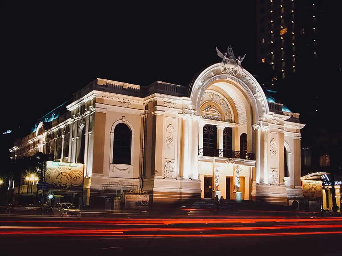 The Opera House, also known as the Ho Chi Minh Theater, is a beautiful landmark with French colonial architecture located at the intersection of Le Loi and Dong Khoi Street in District 1, next to the famed Notre Dame Cathedral and the historic Central Post Office. The theatre hosts a range of performing arts activities, including music concerts, ballets, and other cultural performances.