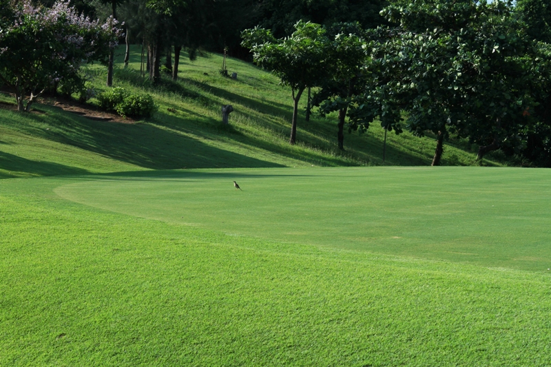 Màu xanh non của cỏ, màu xanh thẫm của cây, màu xanh bao la của trời, quyện vào nhau trong một không gian xanh mênh mông nối tiếp giữa những sân golf này với những sân golf khác.