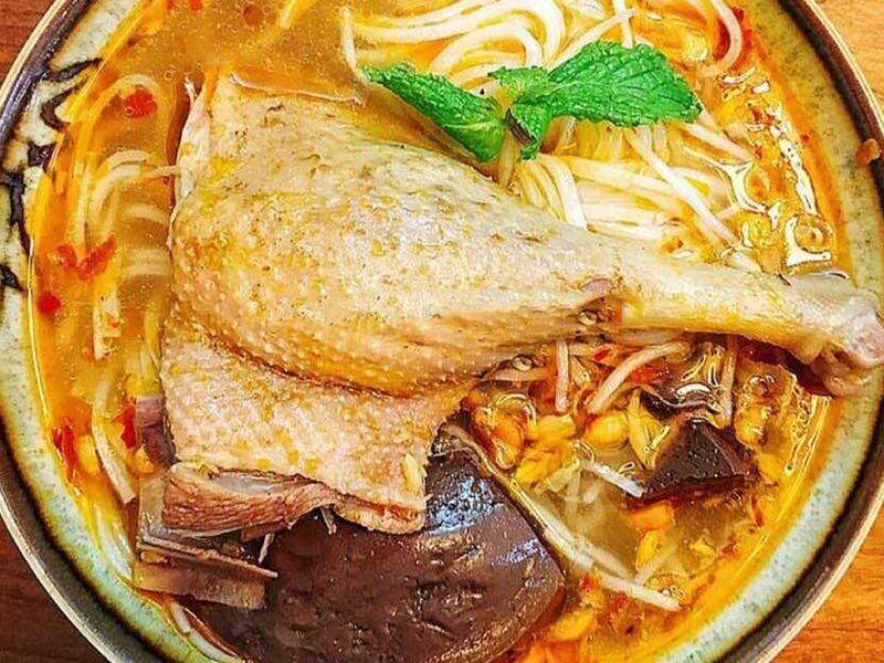 Mì quảng Phan Thiết được nhiều du khách tìm đến cho bữa tối của mình. Mì ở đây có hương vị thơm ngon độc đáo, khác hẳn mì quảng ở Quảng Nam. Tô mì khá to. Sợi mì vàng vàng, dai dai và sợi nhỏ. Du khách cũng có thể gọi bún hoặc hủ tiếu nếu thích. Nước dùng được ninh từ xương nên thơm và có vị ngọt thanh. Mì được ăn kèm đùi vịt, cánh vịt góc tư hoặc chân giò heo. Phần thịt được hầm kỹ nên khá mềm và thấm vị. Món mì quảng ở đây sẽ được ăn kèm cải và rau thơm. Đồng thời, nơi đây còn phục vụ một số loại nước uống cho du khách lựa chọn.