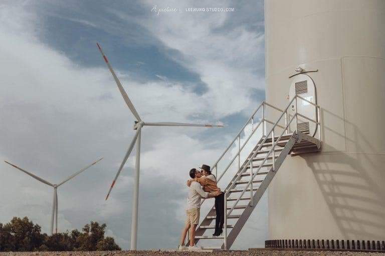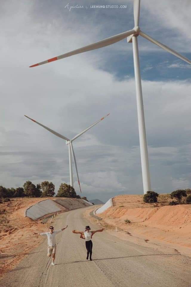 Nhiều cặp cô dâu và chú rể cũng chọn những chiếc tua-bin gió khổng lồ này làm địa điểm chụp ảnh cưới trong album ảnh của mình.