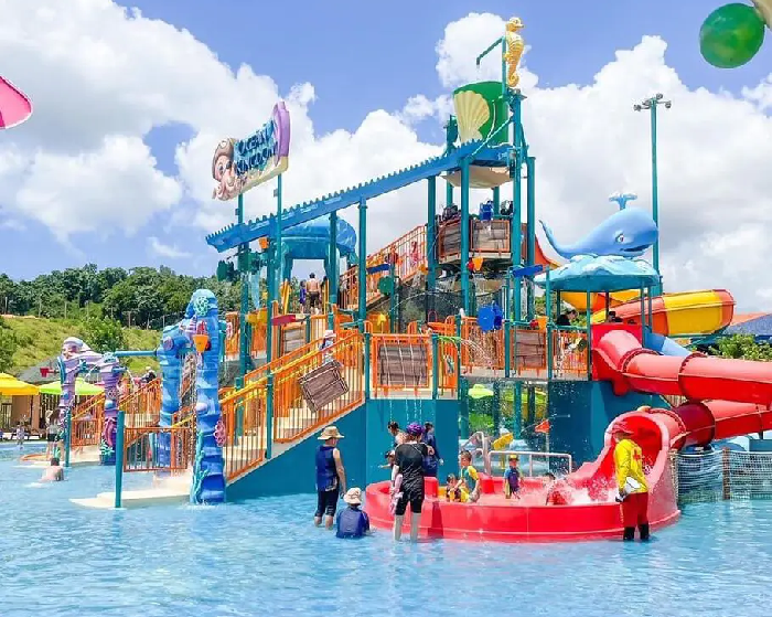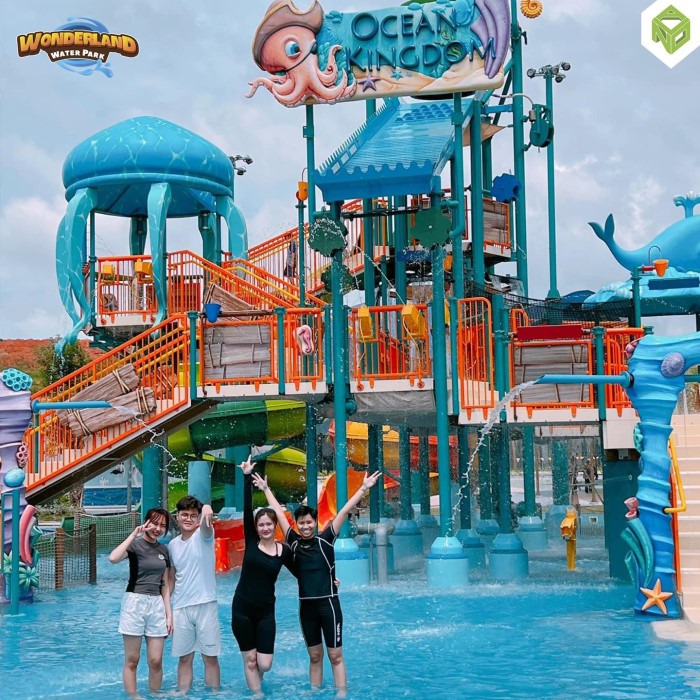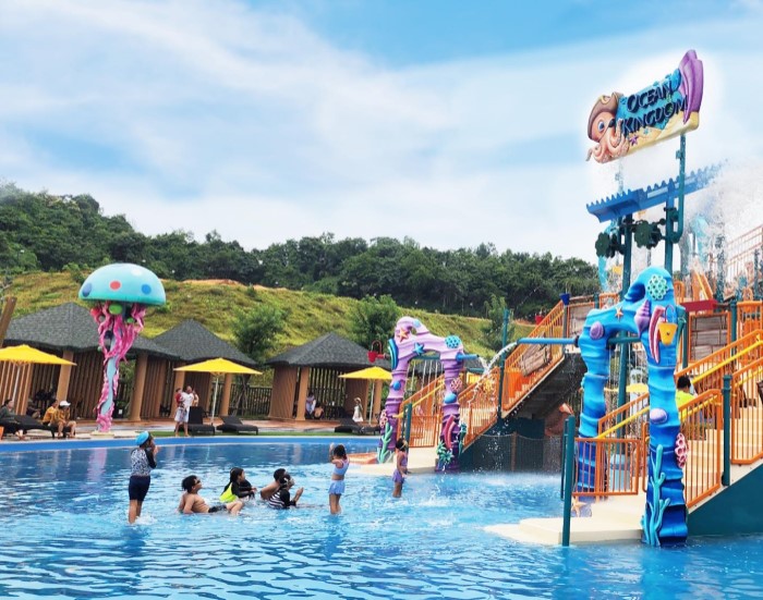 - Ocean Kingdom là phân khu vui chơi ở công viên nước được ví như vương quốc dưới lòng đại dương với nhiều sinh vật biển đầy màu sắc cùng những trò chơi dưới nước vô cùng hấp dẫn. Nơi đây quy tụ đầy đủ những hoạt động vui chơi dưới nước bên cạnh những tiết mục kỹ xảo đặc sắc đem đến cho quý khách những trải nghiệm thú vị nhất. Tất cả hứa hẹn sẽ đem đến Thế Giới phiêu lưu chủ đề Đại Dương đặc sắc cho kỳ nghỉ tuyệt vời của du khách.