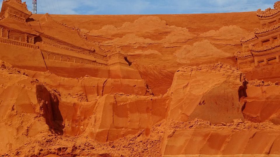 Tượng cát được điêu khắc từ 100% cát tự nhiên, không pha trộn phụ gia và chỉ nhờ sự nén chặt của cát và nước.