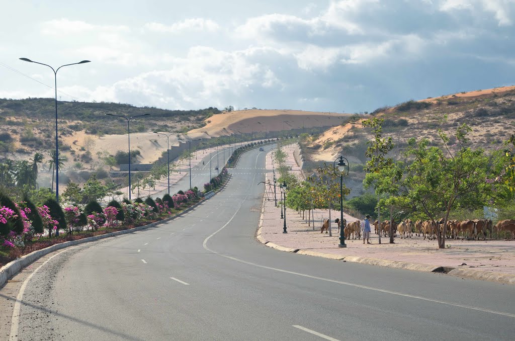 Những con đường ở hành trình này đa phần là thẳng tắp như kéo dài nhưng thi thoảng có nhiều chỗ hơi quanh co và ôm lấy những đồi cát trắng tinh rất đẹp, thậm chí có những đoạn đẹp đến mức người ta ví y như cảnh chỉ có trong phim.