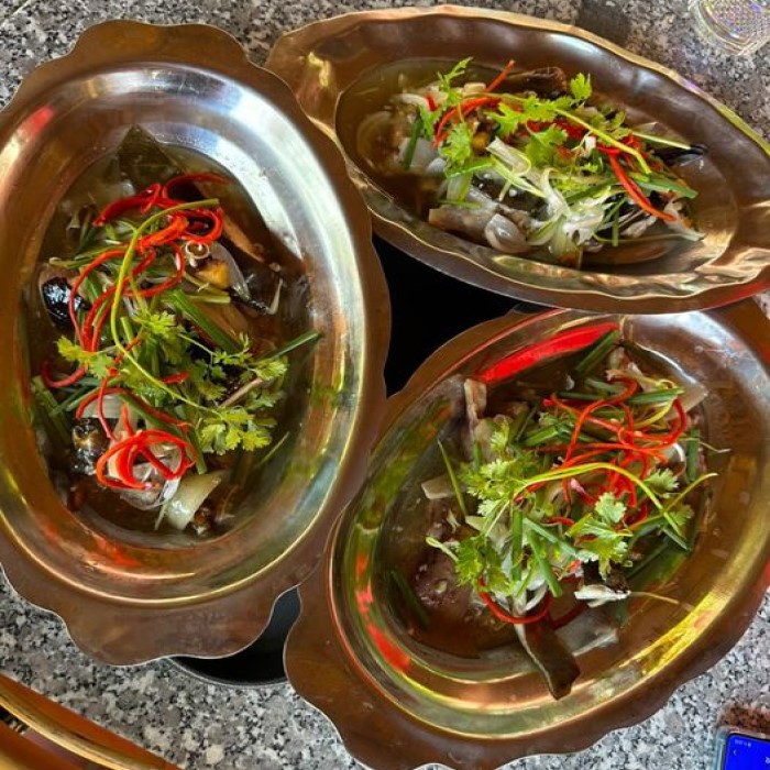 Với cá chình to thì thực khách khi đến đây sẽ chọn chế biến thêm món Cá Chình Hấp Muối, cũng là một trong những bí quyết để giữ nguyên được vị ngọt của thịt cá tươi ngon.