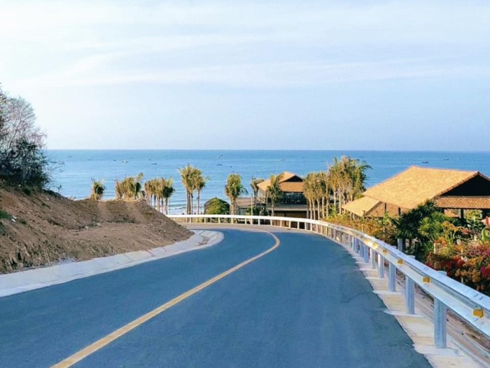 Trên con đường quanh co nằm sát ranh giới của núi và biển, tận hưởng một khung cảnh hùng vỹ đến nao lòng. Những vệt nắng cuối ngày vẽ lên một dải màu ấm áp, từ màu vàng nhạt đến cam vàng rực rỡ tạo nên bức tranh sống động hòa quyện với dải xanh của biển cả, mời gọi du khách dừng chân và hòa mình vào khung cảnh thiên nhiên vói một bên là biển cả mênh mông, một bên là núi rừng xanh thẳm.