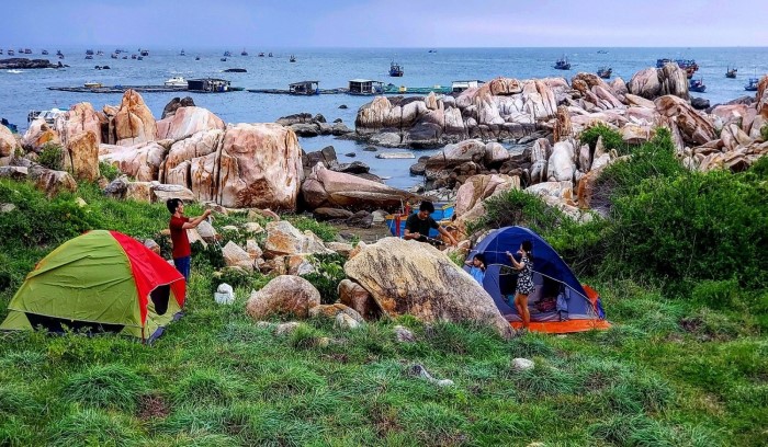 Cắm trại ở bãi đá hải đăng mũi Kê Gà