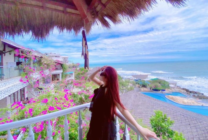 Du lịch biển Tiến Thành ăn chơi ở khu công viên giải trí Bikini Beach Novaworld trên đường Lạc Long Quân Tiến Thành và tham quan Hải đăng Kê Gà cũng hết cả buổi rồi. Lại được tận ngắm cảnh sắc ven biển Vịnh Đá Nhảy, ghé vô nhà hàng cafe Rock Water Bay tọa lạc ngay trên bãi đá giữa biển chụp ảnh cực đẹp. Hoa giấy tại Rock Water Bay là điểm nhấn sắc màu của resort này.