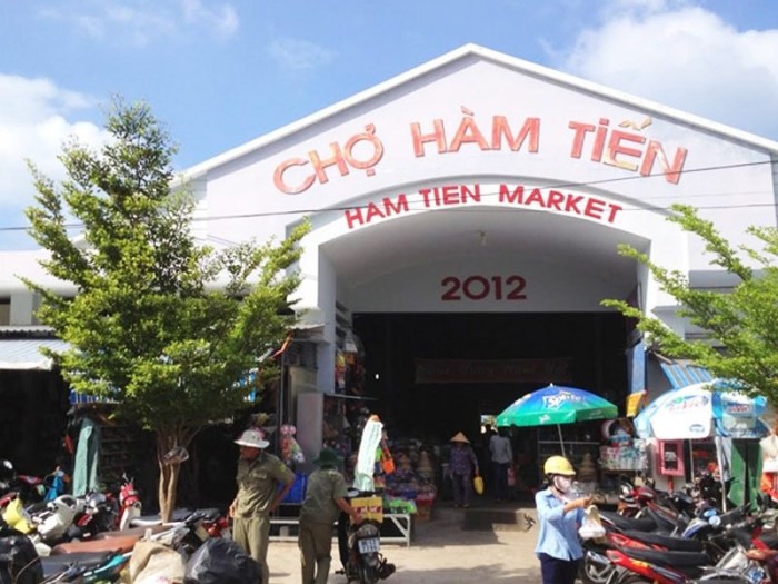 Địa chỉ chợ Hàm Tiến tọa lạc trên đường Huỳnh Thúc Kháng, Mũi Né, cách bờ biển Hàm Tiến khoảng 500m.