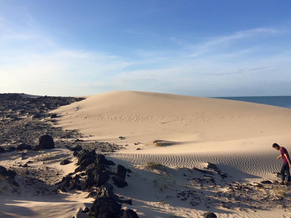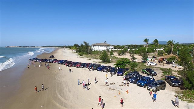 Đến đây, điểm đầu tiên thu hút du khách là chiếc xe “thần thánh” màu xanh dương nằm giữa bãi cát trắng với chức năng duy nhất là làm “cảnh” và phát nhạc.