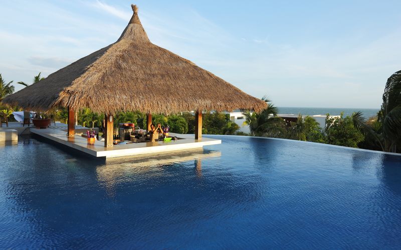 Meraki Oasis có hồ bơi view biển thật sự xịn xò mà các tín đồ sống ảo không thể bỏ qua, hồ bơi vô cực siêu đẹp view trực tiếp ra biển. Vừa bơi, vừa ngắm biển, rạng dừa xào xạc thẳng tắp. Khách sạn có thiết kế tre nứa rất đặc biệt. Ánh nắng chiếu qua các khe làm cho background của các tấm ảnh khác biệt và ảo diệu thật sự. Tầm 2h chiều chụp hình là đẹp nhất nhé, hơi nắng mà ra hình rất đẹp.