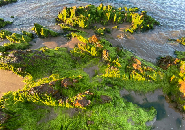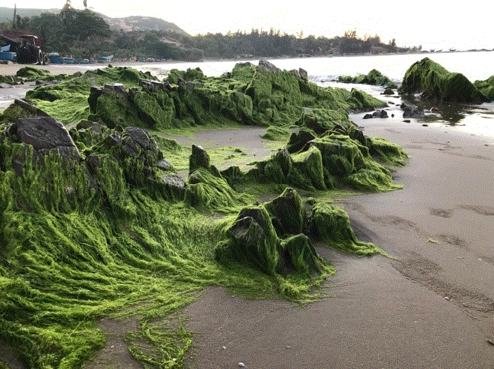 Đến bãi rêu làng chài vào buổi sáng sớm bạn sẽ được thưởng ngoạn một số cảnh đẹp của làng chài nơi đây. Nay là thời gian bắt đầu xuất hiện bãi rêu phủ trên các phiến đá xanh thẳm.