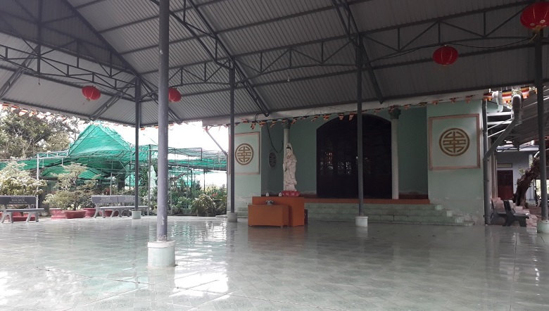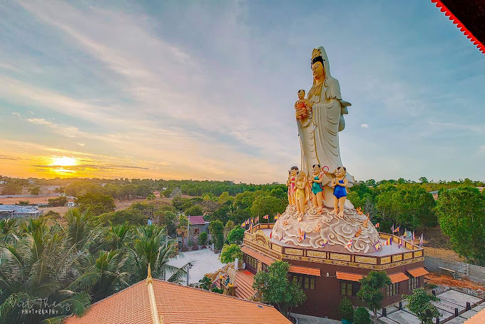 Đứng ở tầng 3 ngôi bảo điện phóng tầm mắt ra xa ta thấy rừng dừa của làng Thiện Trung ngút ngàn, xanh thẳm; những cột điện gió cao vút, xa hơn nữa về hướng đông thấp thoáng những khu biệt thự sang trọng ở Mũi Né nằm thoai thoải trên đồi cao lộng gió…Bên cạnh ngôi bảo điện 3 tầng là khu tôn tượng Phật Quan Thế Âm Bồ Tát cao 39 mét cùng hàng chục tôn tượng ứng hóa thân Bồ Tát Quan Âm; phía trước là 12 Tôn tượng Đại Nguyện Quan Âm. Quan Âm luôn hiện thân trong mọi hình dạng để cứu độ chúng sinh, con người thoát khỏi bể khổ, hướng đến chân - thiện - mỹ.