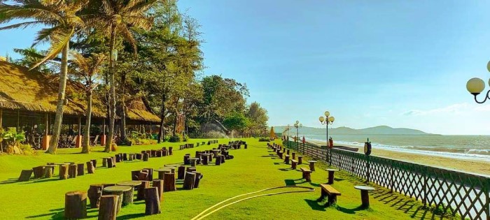 Phía trước là biển, cafe vào buổi sáng nắng chiếu lung linh, hoàng hôn thì lãng mạn, còn đêm về sóng vỗ ru êm.