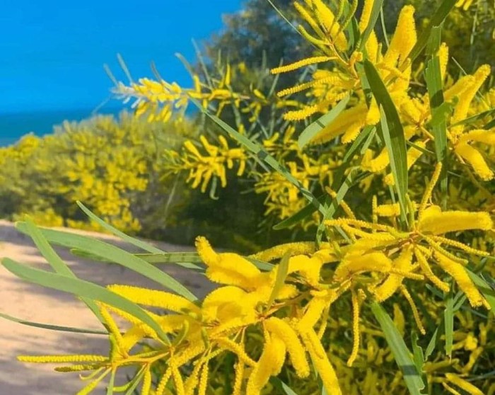 Thời gian vào cuối năm, những rừng keo lá tràm tại Mũi Né đang vào mùa hoa nở, vàng rực một góc trời, du khách cứ đi dọc đường Võ Nguyên Giáp (706B), hay cung đường Mũi Né - Bàu Trắng và Hòa Thắng - Hòa Phú, sẽ bắt gặp những hàng hoa keo lá tràm đua nhau khoe sắc, tô điểm, sáng bừng một màu vàng óng ả.
