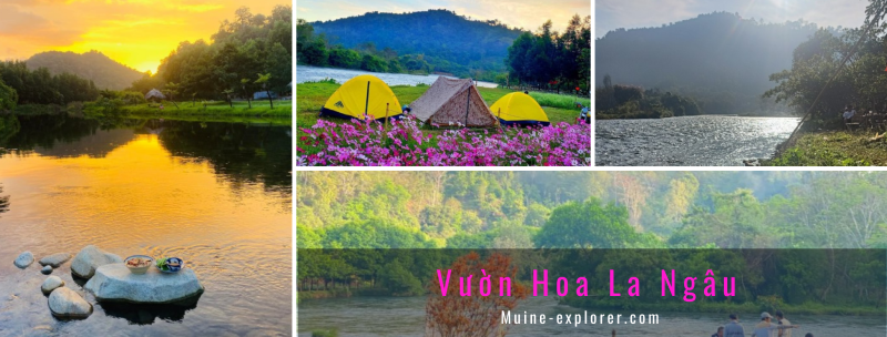 Review La Ngâu: Vườn Hoa La Ngâu là địa điểm camping du lịch dã ngoại tại Tánh Linh Bình Thuận có cho thuê lều ngủ và cho thuê bãi cắm trại, phục vụ ăn uống. Khu cắm trại sinh thái ở La Ngâu này nằm bên dòng suối đá có không gian ngoại cảnh rộng lớn hoang dã được bao quanh bởi cánh rừng, núi và bãi cỏ xanh mướt thích hợp cho các công ty tổ chức Camp building.