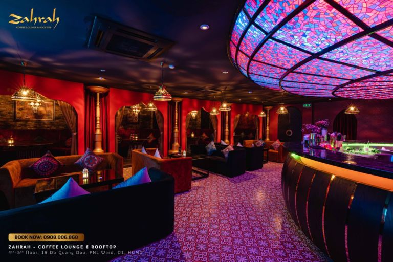 Zahrah Coffee Lounge & Rooftop là địa điểm giải trí Sài Gòn về đêm mới nổi. Không gian ở đây được chia thành hai khu vực là In House Lounge và Rooftop. Mỗi khu vực sẽ mang lại cho bạn những trải nghiệm khác nhau.