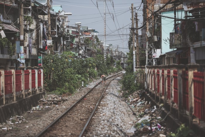 Xóm đường tàu là địa điểm chụp hình vintage ở Sài Gòn, giống như các xóm đường tàu khác của Sài Gòn, xóm giao lộ đường Chiến Thắng và Trần Khắc Chân, Quận Phú Nhuận khá nhộn nhịp dù là ngày hay đêm.