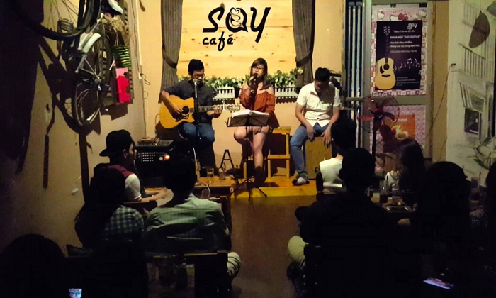 Một số địa chỉ gợi ý như phòng trà Bến Thành, We, Không Tên, Đồng Dao. Quán bar hay cà phê Acoustic: Yoko Cafe, Rock Fan Club, Sax N’ Art Jazz Club, Acoustic Bar, Drinking & Healing, Vừng.