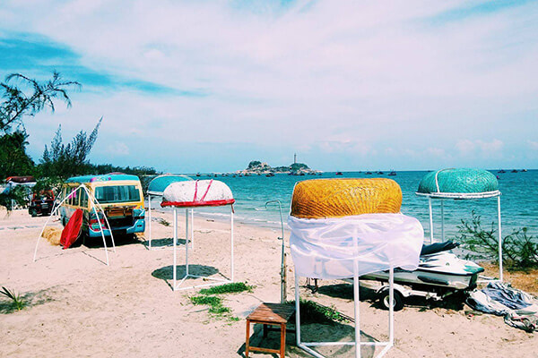- Lu Glamping - Beach Bar & Camp Kê Gà: Điểm Glamping này nằm sát bờ biển nhưng không gần vị trí lên cano ra hải đăng cho lắm. Ở đây có cắm trại, tổ ong, phòng riêng, phòng dành cho gia đình…. Giá cũng khá rẻ (khoảng 100k/người nếu ở tổ ong).