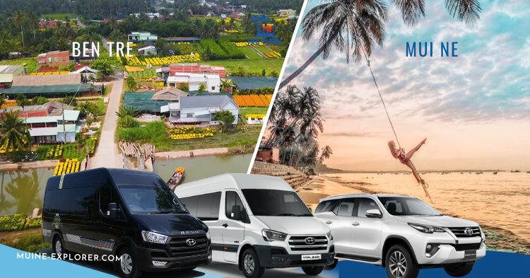 Khoảng cách từ Bến Tre đến Mũi Né là 290 km, và thời gian di chuyển khoảng 5 tiếng lái xe đi vào trung tâm TP Hồ Chí Minh và đi cao tốc Dầu Giây - Phan Thiết để đến Mũi Né. Thuê xe từ Bến Tre đi Phan Thiết Mũi Né ở đâu giá tốt, xe đời mới chất lượng cao?