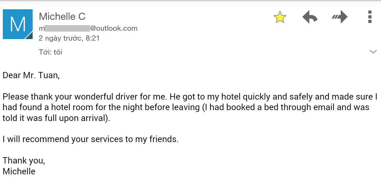 Dịch vụ gồm: Xe riêng đưa đón tận nơi, lái xe, phí cầu đường