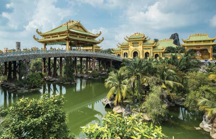 08h30: Quý khách sẽ tham quan Khu Kim Điện, Bảo Tháp, Dòng Bảo Giang, Dãy núi Ngũ Hành Sơn.