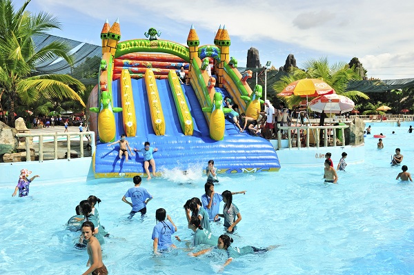 13h00: Di chuyển sang Biển, nghỉ ngơi tại chỗ và Tham quan tắm Biển Đại Nam với quy mô 21,6 ha, tổng diện tích mặt nước 20.000m2 với sức chứa 30.000 người, biển có độ dập sóng cao 1,6m,… Biển Đại Nam bao gồm 2 khu vực: khu vực Biển nước ngọt và khu vực Biển nước mặn. Nằm giữa lòng núi hùng vĩ bên cạnh lâu đài tráng lệ được thiết kế dưới hình thức hồ tạo sóng kép, bao quanh các đảo nhỏ giữa lòng biển. Sóng Biển được đánh bằng hơi gió với 8 kiểu tạo sóng vô cùng độc đáo.