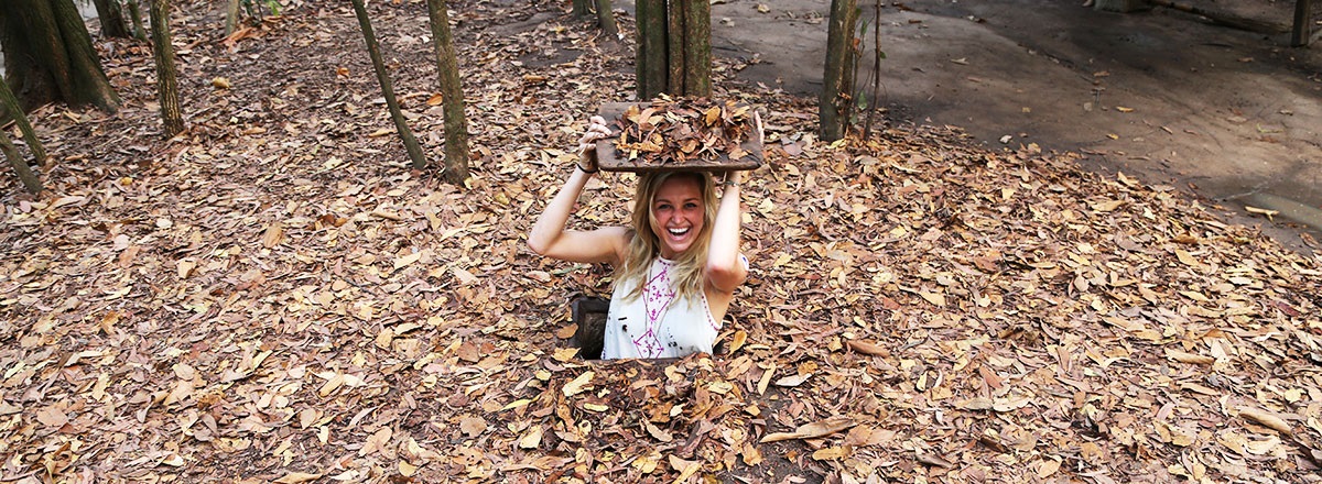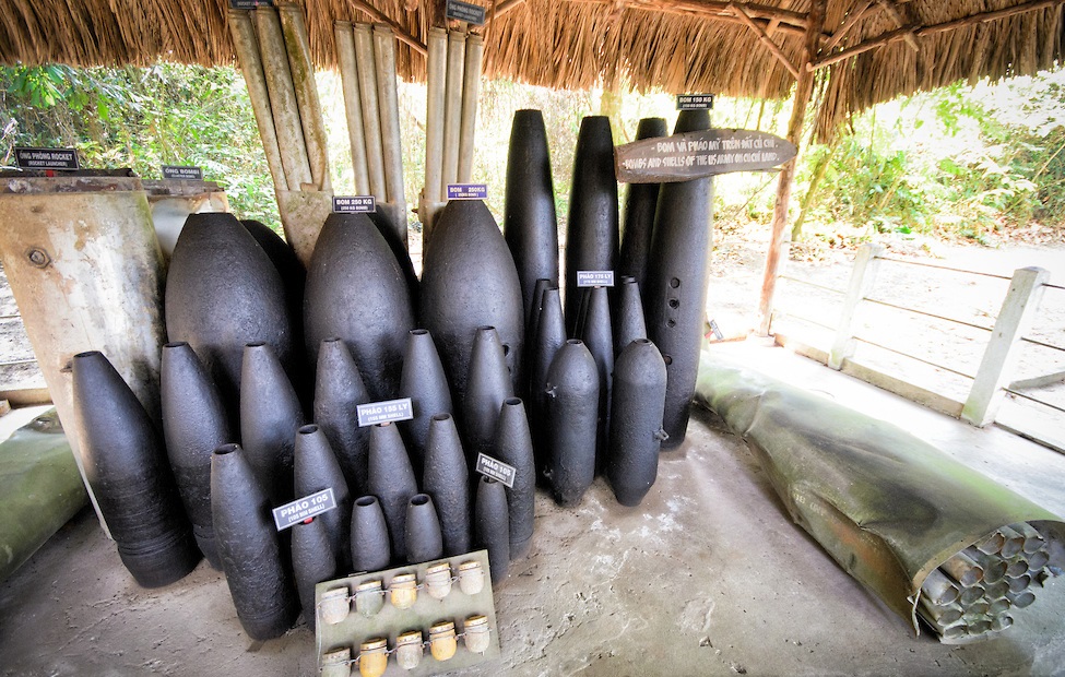 Tham quan Bảo Tàng vũ khí chiến tranh và địa đạo: khoảng 200 km dưới lòng đất, hệ thống hầm chiến đấu, chông mìn tự tạo, bếp Hoàng Cầm – giấu khói khi nấu được sử dụng trong suốt cuộc chiến tranh.