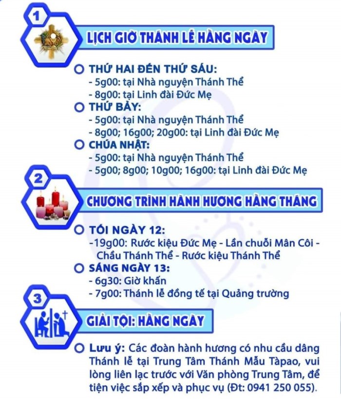 LỊCH GIỜ THÁNH LỄ TẠI ĐỨC MẸ TÀ PAO