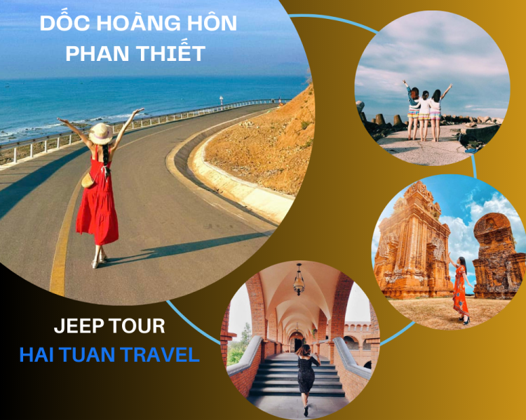 Dốc ngắm hoàng hôn Phan Thiết là một địa điểm check-in mới tại Phú Hài - Phan Thiết, một cung đuòng mói ven biển Mũi Né - Phan Thiết với con dốc nhìn thẳng xuống biển. Tour thục hiện bằng xe Jeep hoặc xe ôtô máy lạnh.
