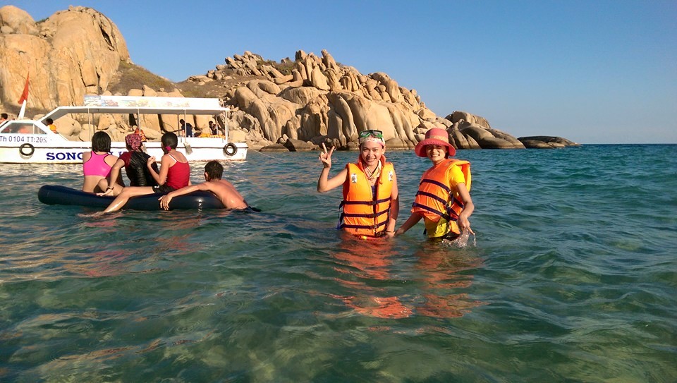 Sau khi đến biển cà Ná, du khách sẽ lên tàu đi tham quan đảo, xuất phát từ cảng Cà Ná ra Cù Lao Câu mất khoảng 1h15 phút.