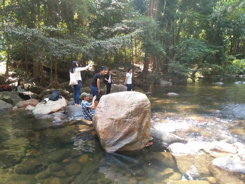 Khoảng 15 phút leo trèo chúng ta được đền đáp xứng đáng bằng một hồ nước lớn. Cảm giác được ngâm mình trong dòng thác trong vắt, mát lạnh – xua tan mọi cảm giác mệt mỏi.