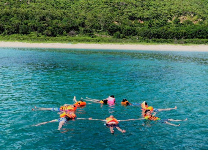 10h: Cano sẽ chở bạn tới điểm lặn ngắm san hô, khách sẽ được trãi nghiệm bơi giữa biển, có kính lặn san hô, hướng dẫn viên sẽ giúp bạn quay lại những clip lặn san hô)
