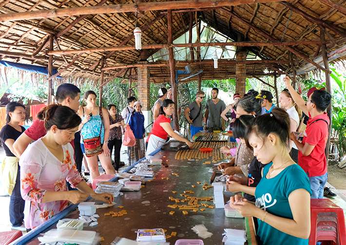 Cồn Lân: tham quan lò mật ong, lò kẹo dừa, chèo xuồng 3 lá