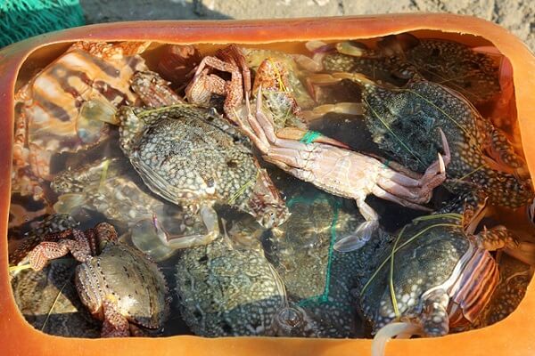 Một sọt ghẹ còn sống có giá 100.000 đồng