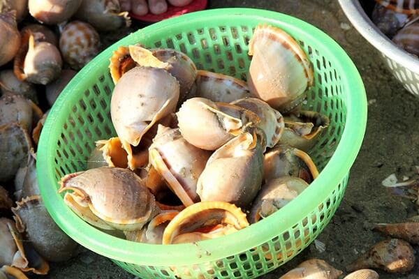 Ghẹ, ốc chất thành đống được phân loại đựng trong rổ để chào bán. Hải sản tươi được luộc ngay tại chỗ, có màu sắc và mùi vị khá thơm ngon. Hàng ngày, khu chợ luôn đông đúc từ 6h sáng đến 10h.