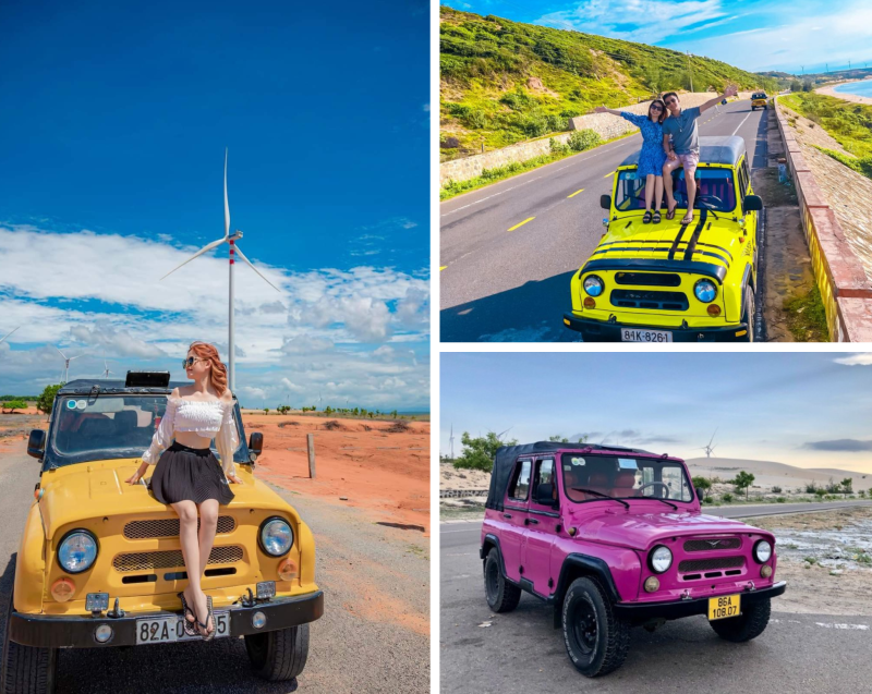Tour xe jeep sẽ đón quý khách tại khách sạn/ resort ở Mũi Né đi khám phá cung đường cát trắng, một trong những cung đường biển đẹp nhất Việt Nam mà bạn không thể bỏ qua khi du lịch đến Bình Thuận.